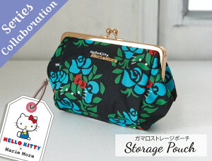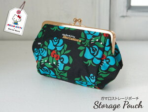 ハローキティ ストレージポーチ 薔薇柄 花柄 ブルー ブラック サンリオ 【送料無料 あす楽対応】がま口ポーチ コスメポーチ 化粧ポーチ 小物入れ 収納 マチあり オシャレ かわいい レディース 日本製 ギフト プレゼント marie more メアリーモア