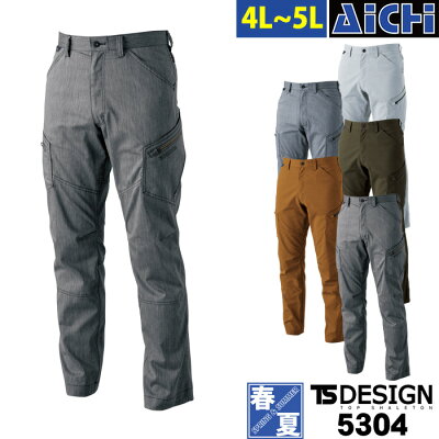 TS DESIGN 藤和 作業服 5304 メンズ カーゴパンツ 春夏 4L 〜 5L | ストレッチ 吸汗速乾 UVカット 防透け 遮熱 大きいサイズ 日本製